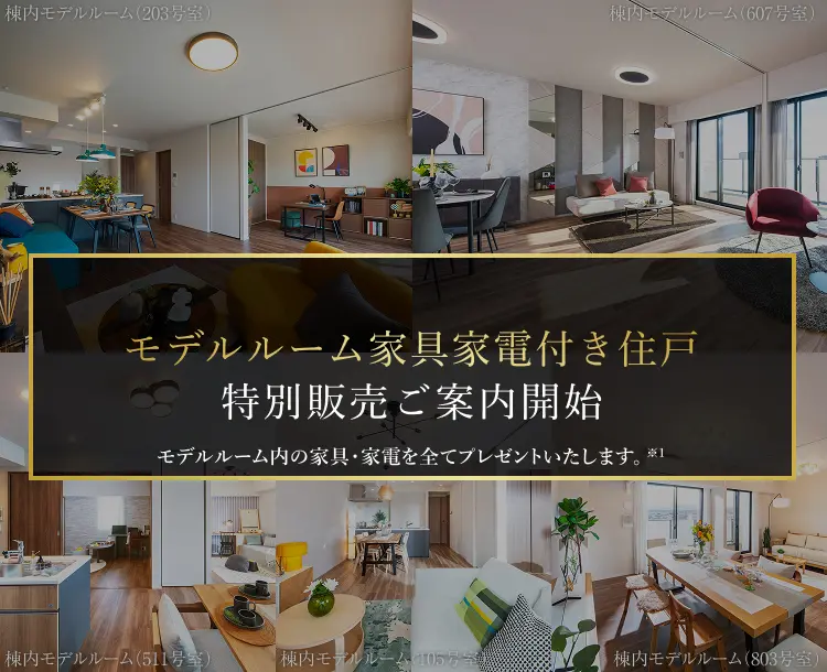 対象住戸/家具・家電付きモデルルーム:203号室、511号室、607号室、803号室、イケアコーディネートルーム(一部の家電製品を除く):105号室※モデルルーム使用期間は住戸により異なります。詳細は担当者へお問い合わせください。